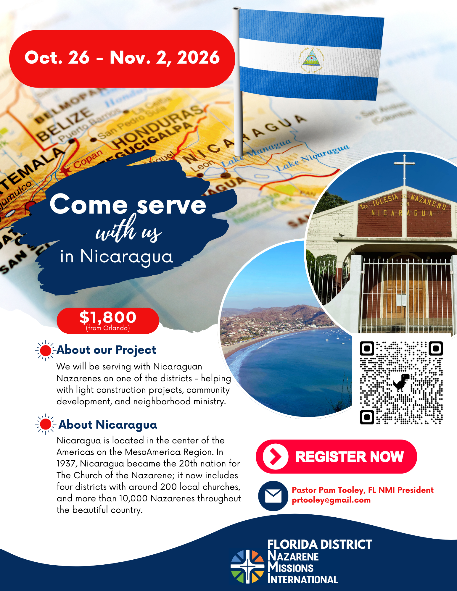 In October, we will partner with the Central District led by District Superintendent Maria Antonia Ponce. This impact has the potential to encourage the local pastors as well as to impact our Florida church members with ideas for our home communities.